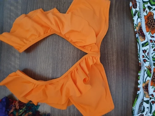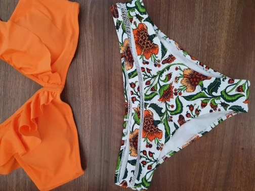 This two piece is sooo pretty. I love the color and the pattern, absolutely perfect! Really fast shipping. I ordered on Dec 23 and received Jan 4th, in great packaging. I ordered a M because I was nervous it could run small. I am 5'2", 116lb, the M fits perfect, I probably could have ordered a S. Thank you seller! I already ordered two more sets. Can't wait!