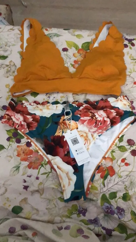 El bikini muy bonito, igual que en la foto. Se ve de buena calidad, como todos los que me he comprado de esta marca.La tela no cede, así que mirad bien la talla que cogéis. Los bordes pican un poco por la forma en que están cortados los círculos decorativos. Además, me ha llegado el pedido en tan solo una semana.